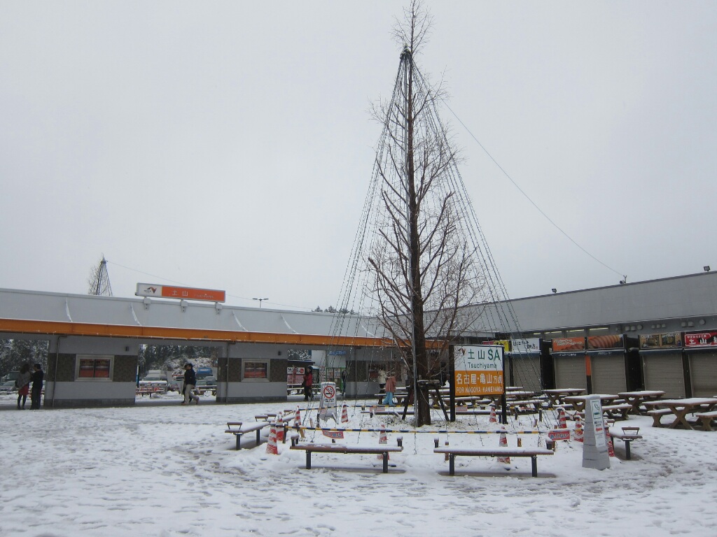 【昼飯@土山SA】 (GORRY) 走るには支障ないが歩くのに支障がある程度には雪
