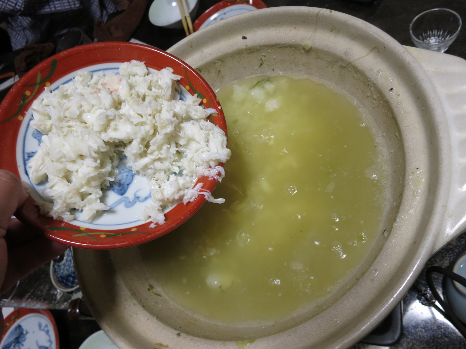 【頃合いをみて最初にほぐした蟹に身を投入】 (GORRY)