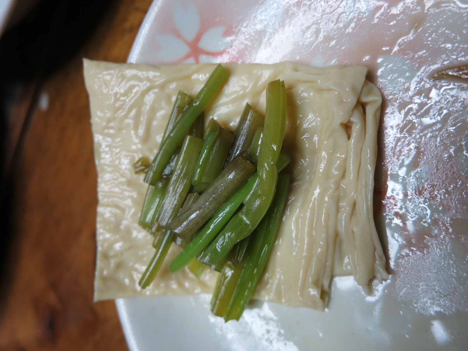 【尾瀬ドーフの湯葉で山葵菜を巻いて食うとうまい…】 (GORRY)