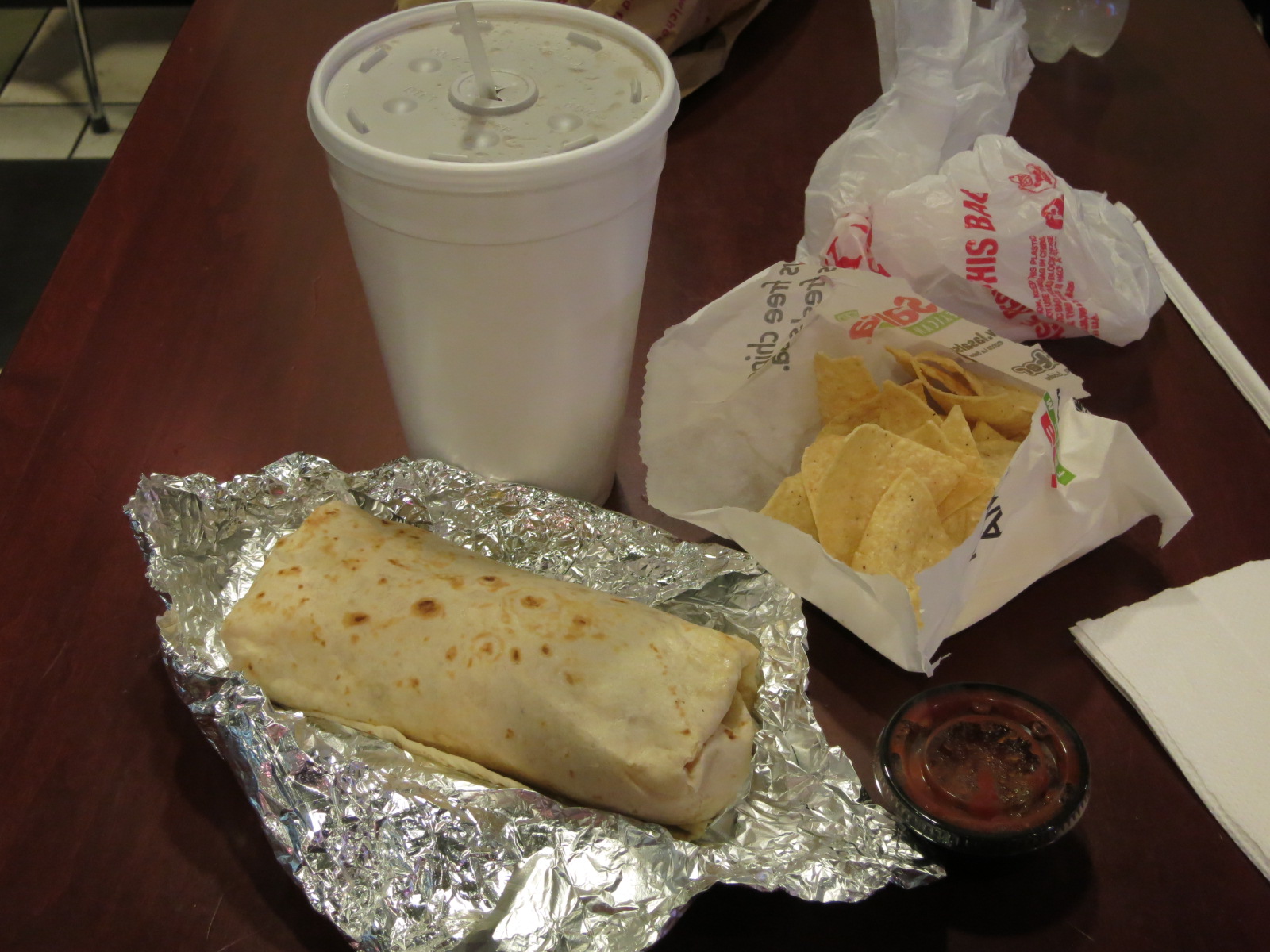 【ブリトーで朝食】 (GORRY) この空港はちゃんと朝早くていいな…