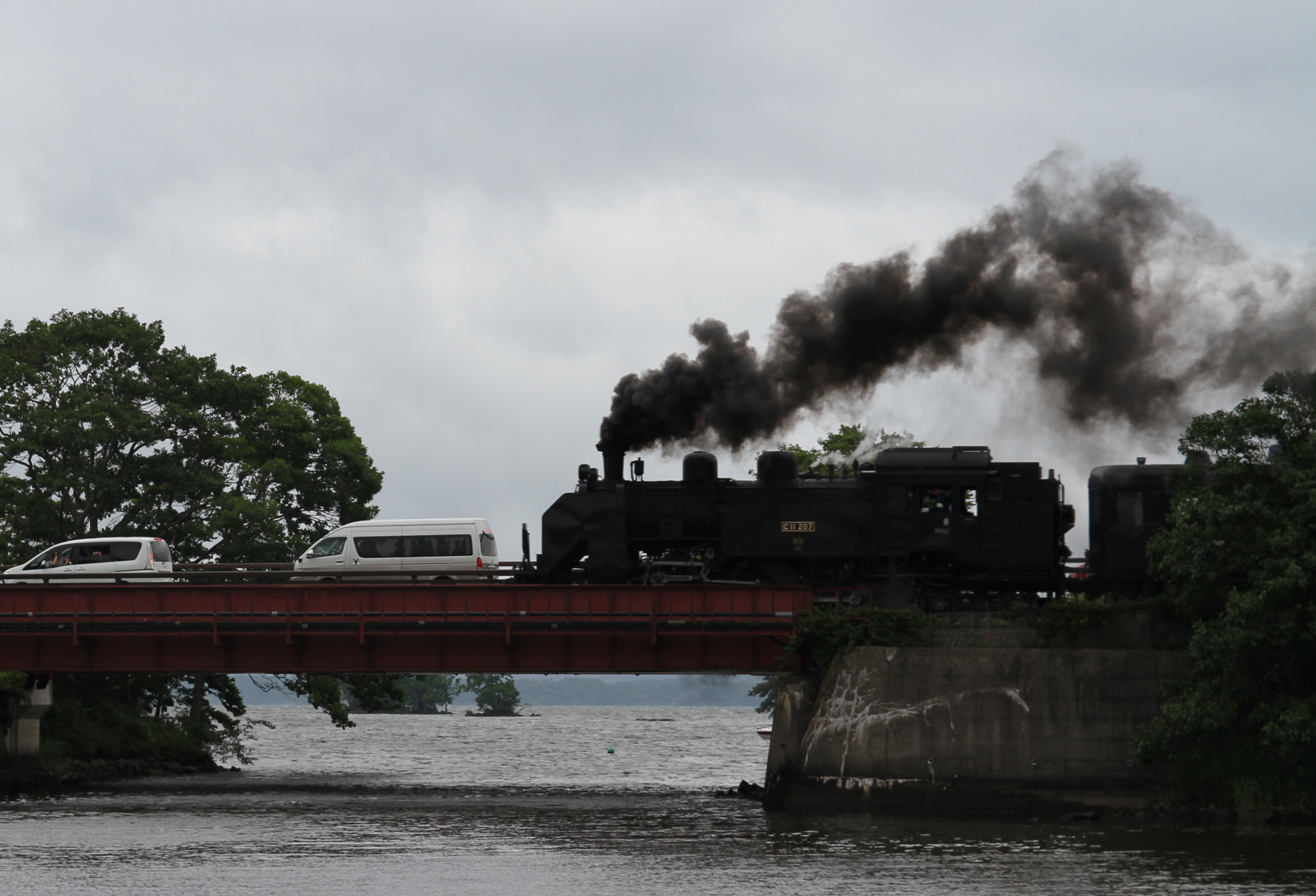 【大沼ゆうらん船からSL】 (GORRY)