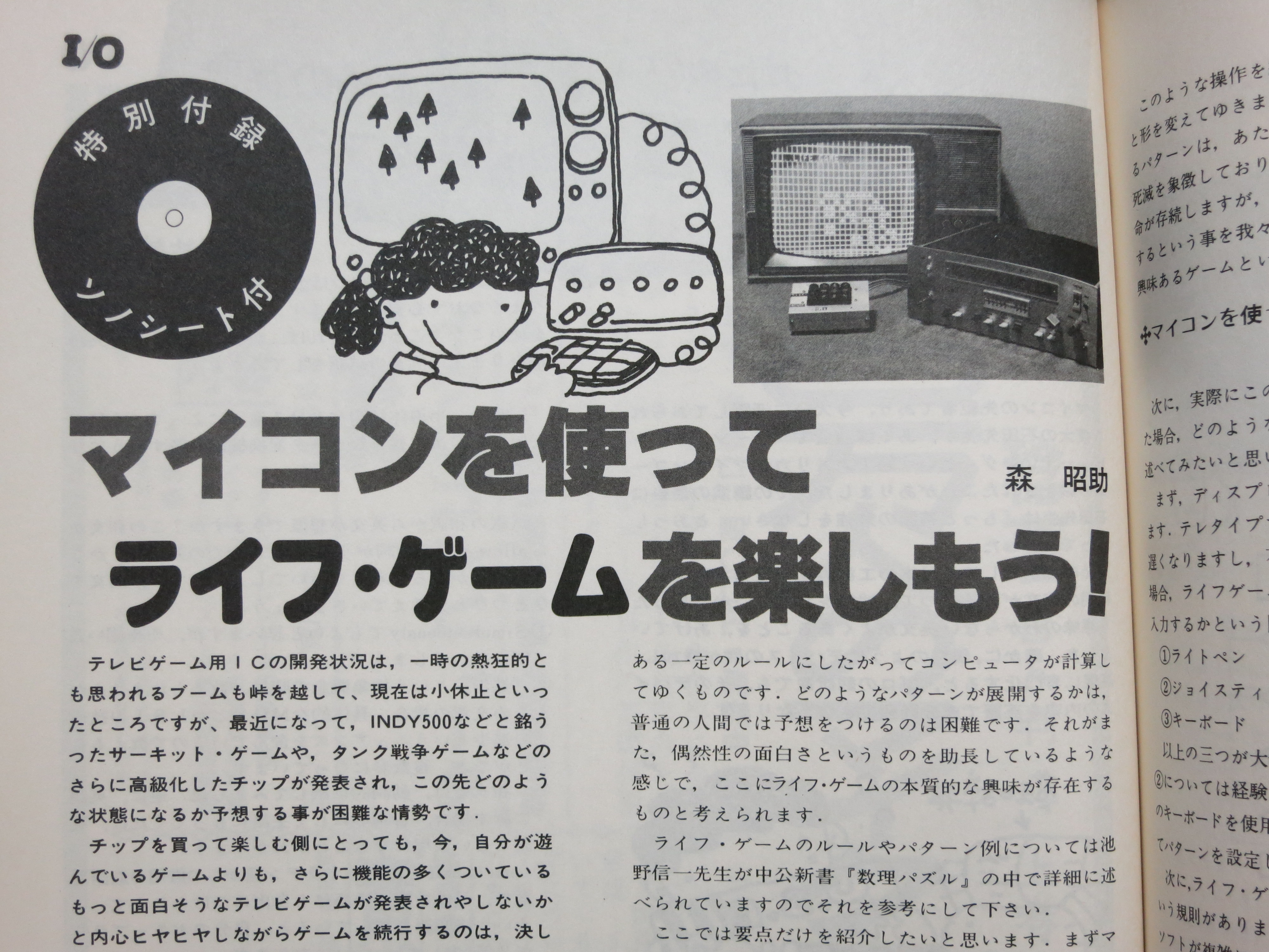 【I/O 1977/8 「マイコンを使ってライフ・ゲームを楽しもう」】 (GORRY) こんな時代にプログラム入りソノシート付録があったか…