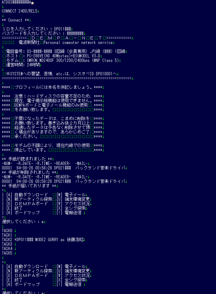【ある日のDEMPA-NETのログ】 (GORRY) 電波新聞社で開発&原稿受渡用にクローズド運営されていたもの