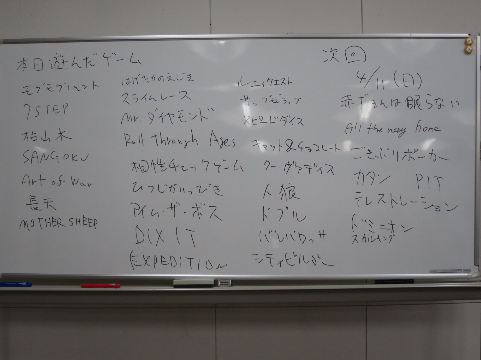 【本日プレイ一覧@月島ゲーム会】 (GORRY)