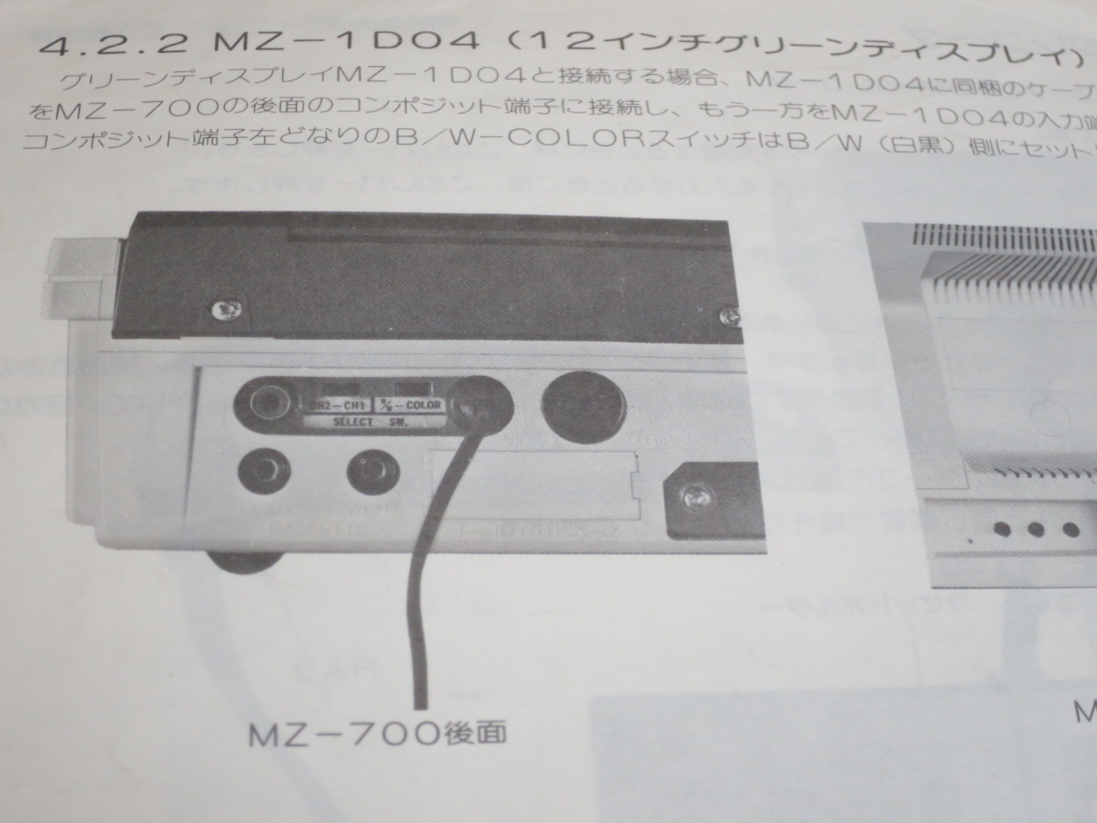 【MZ-700マニュアルよりグリーンディスプレイ接続】 (GORRY) うちはまだモノクロNTSC出せる機材健在w